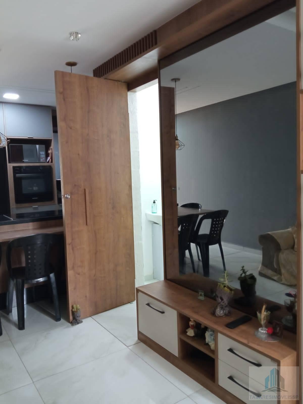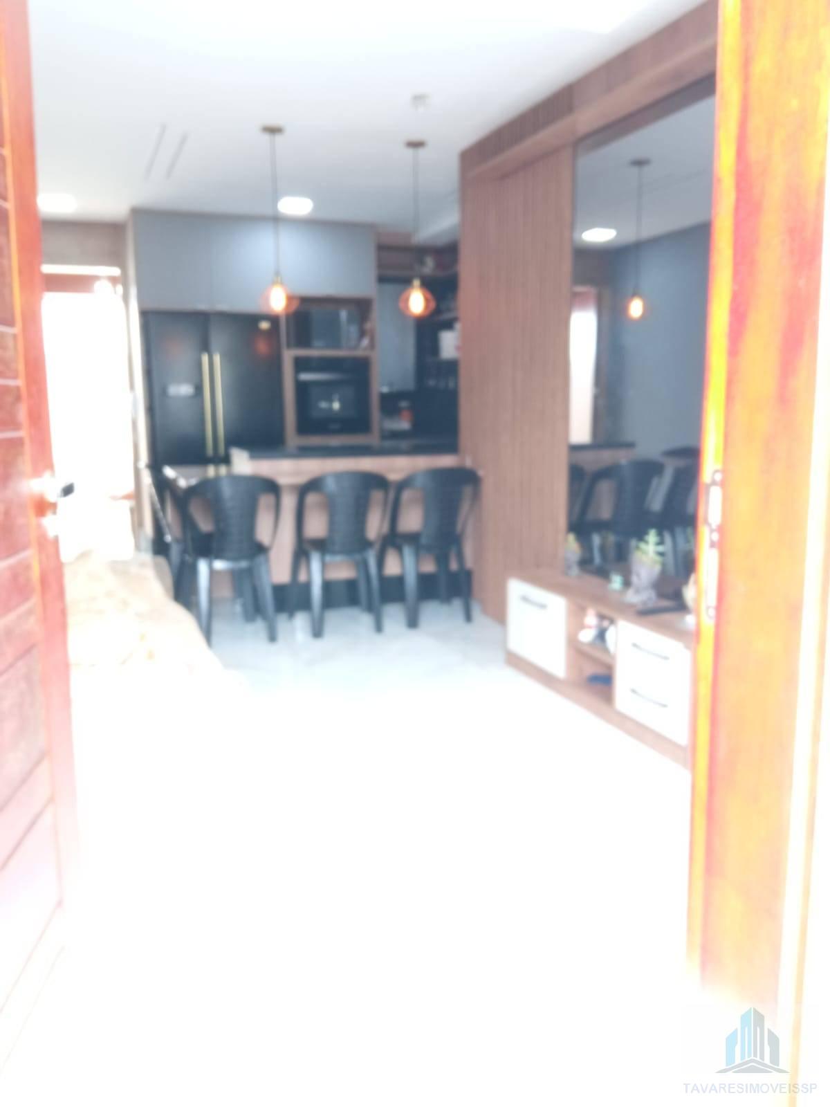 Sobrado com 2 dormitórios, um deles com guarda roupas de casal com sacada e piso laminado, sala de estar com painel e tv embutida no painel, cozinha planejada completa com armários e eletrodomésticos e com piso porcelanato, área de serviço nos fundos com piso porcelanato, um ótimo espaço para fazer a área gourmet do jeito que sonhou e 1 vaga de garagem.